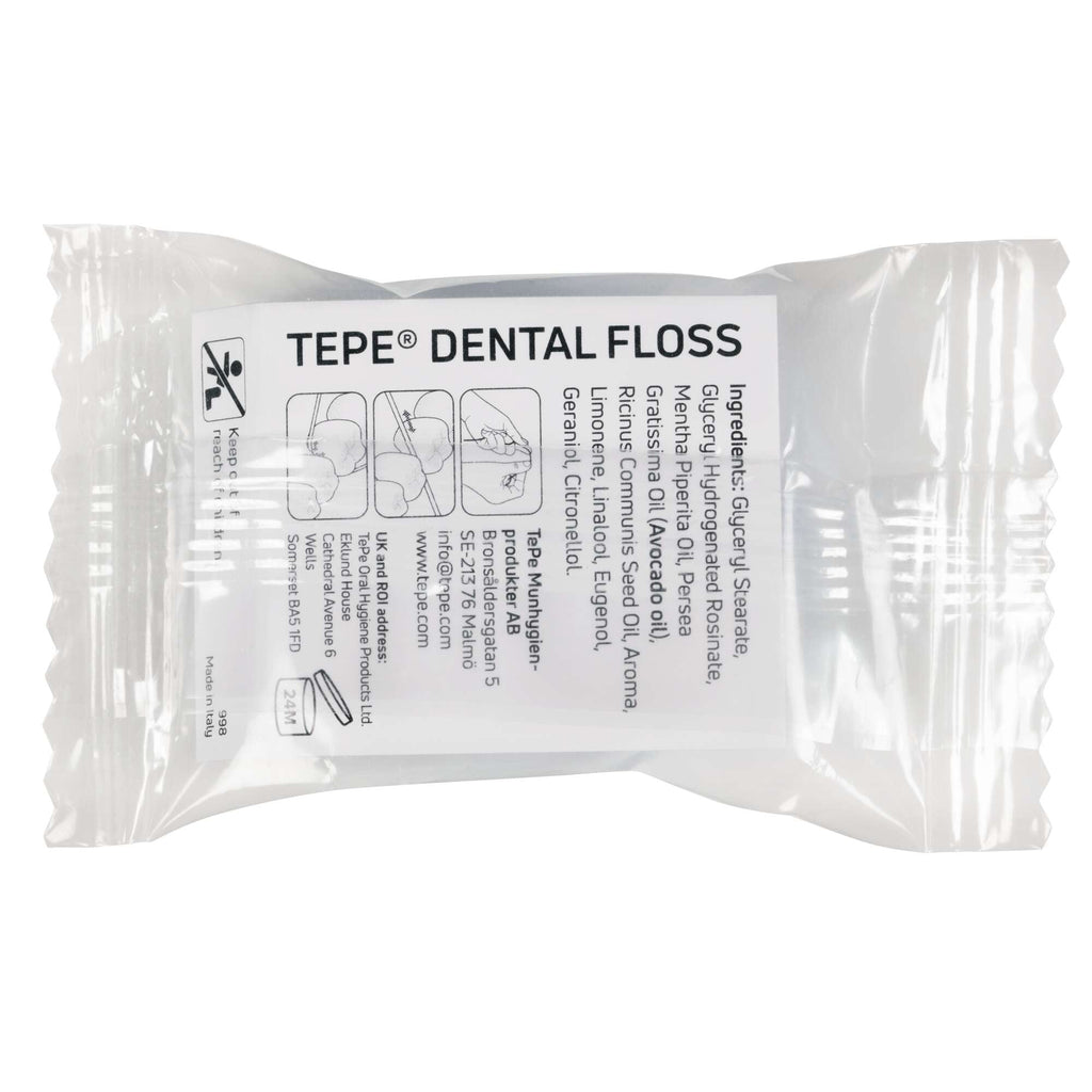 TePe Dental Floss is an expanding and strong dental floss that efficiently and gently removes plaque between teeth. The floss easily slides between teeth due to its coating in vegetable wax and avocado oil. The pfas free floss contains of multiple threads which make an increased cleaning surface.